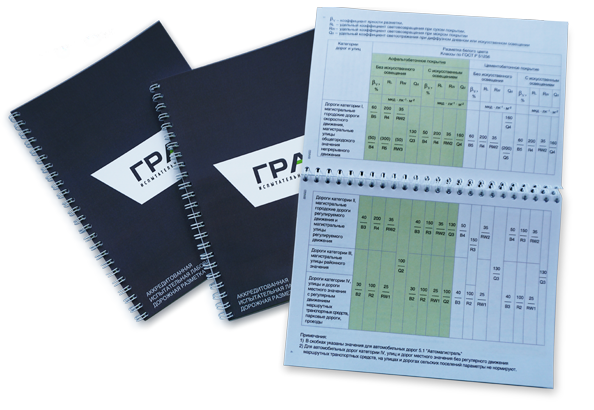Блокнот разделён на 3 части: технические требования к горизонтальной разметке, линии разметки и страницы для записей;